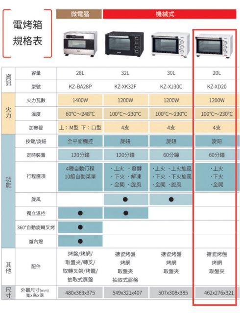 1.聲寶KZ-XD20 20L電烤箱(全新未使用)