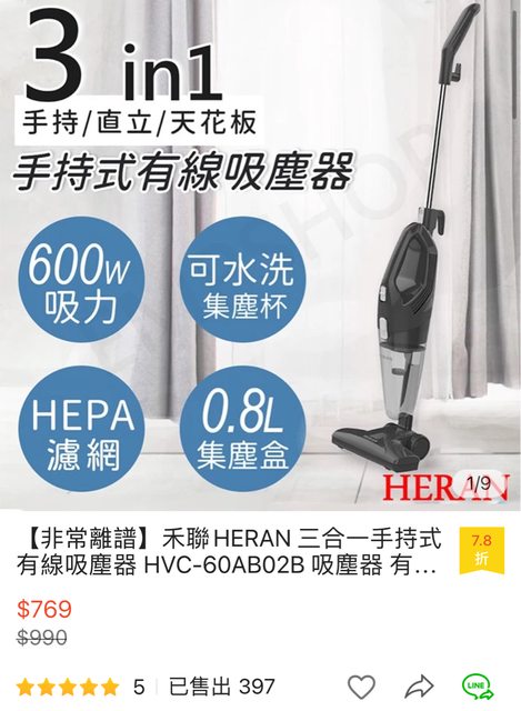禾聯HERAN三合一手持式有線吸塵器(HVC-60AB02B)