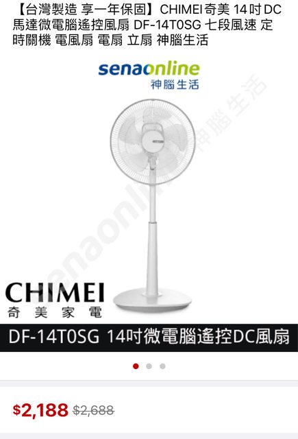 奇美14吋DC微電腦遙控風扇-白色(DF-14T0SG)
