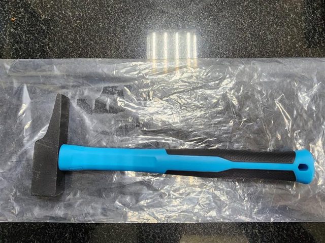 台,警方正查處偵辦中。圖為男子犯案用鐵鎚。(台南市警