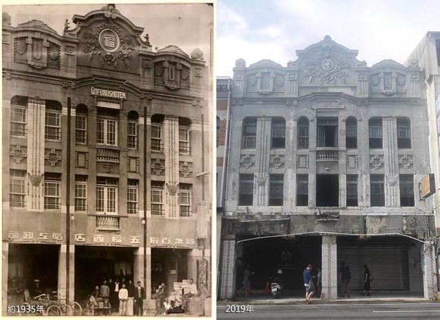 圖為五福商店1935年與2019年修復前對照圖。(圖取自facebook.com/gofukushoten)