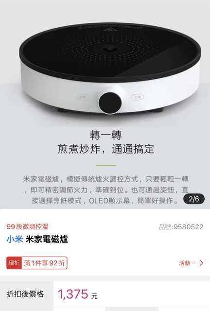 1. 小米 米家電磁爐