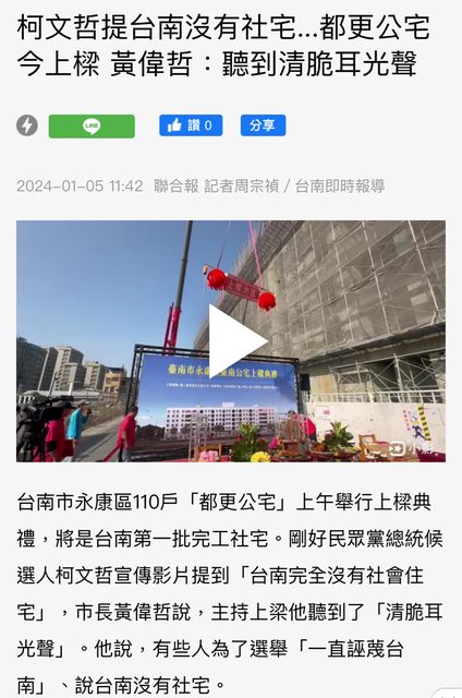 噓 xup654z: 民進黨全面執政八年,台南執政十幾年…只能拿出110戶的上 01/05 12:15