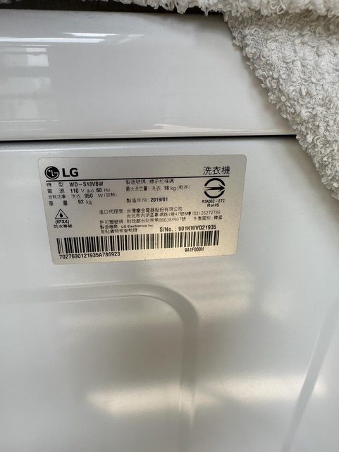 標題[交易] 賣LG 18公斤滾筒洗衣機