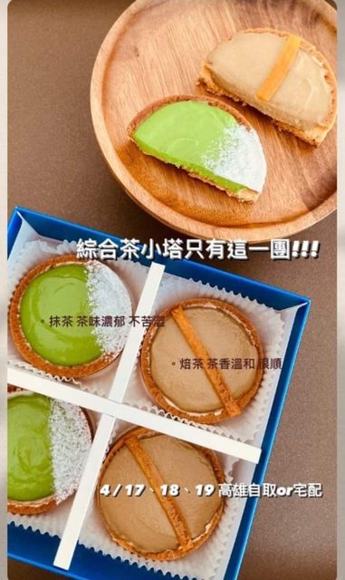交易金額:焙茶x抹茶小塔350/抹茶乳酪400/藍莓400/檸檬350(大塔均6吋)