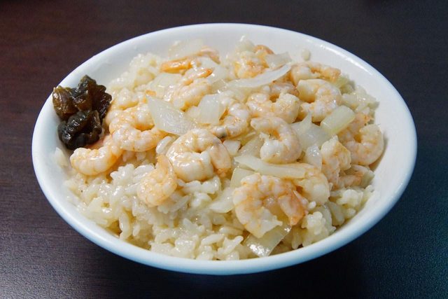 飯的口感吃起來相當濕潤,這其實是因為早期台南的蝦仁飯就是由日本和風洋食的燉飯改