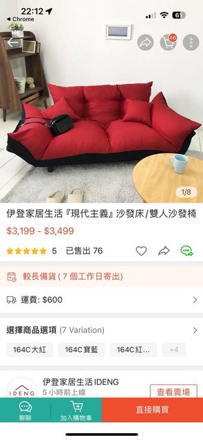 交易物品:伊登家居生活『現代主義』沙發床/雙人沙發椅