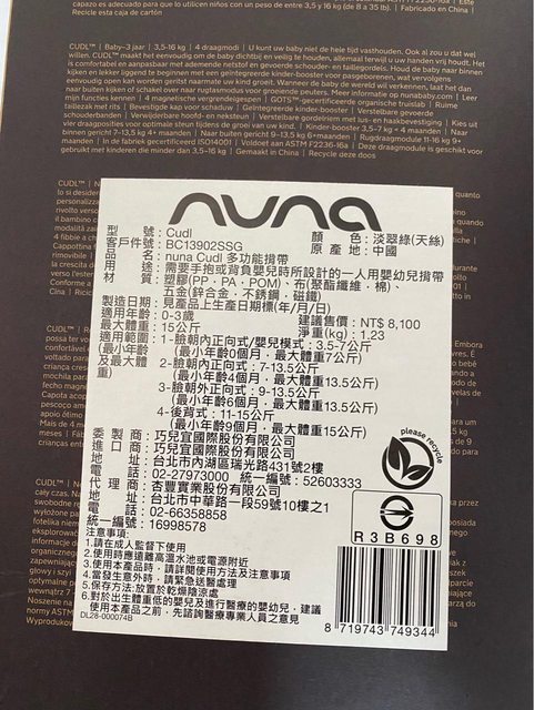 1.Nuna揹巾 天絲款 綠色 八成新 $4000