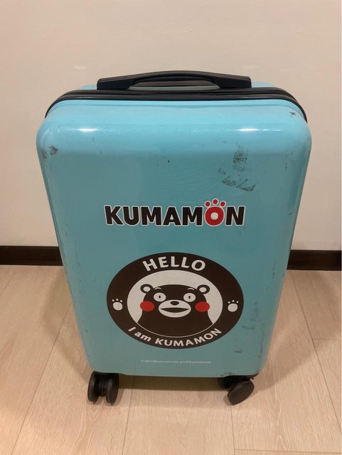 11. 二手熊本熊行李箱 搭一次飛機就被摔得很髒輪子有點難推 $50