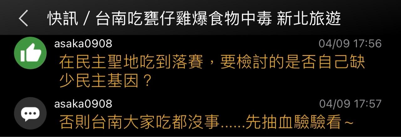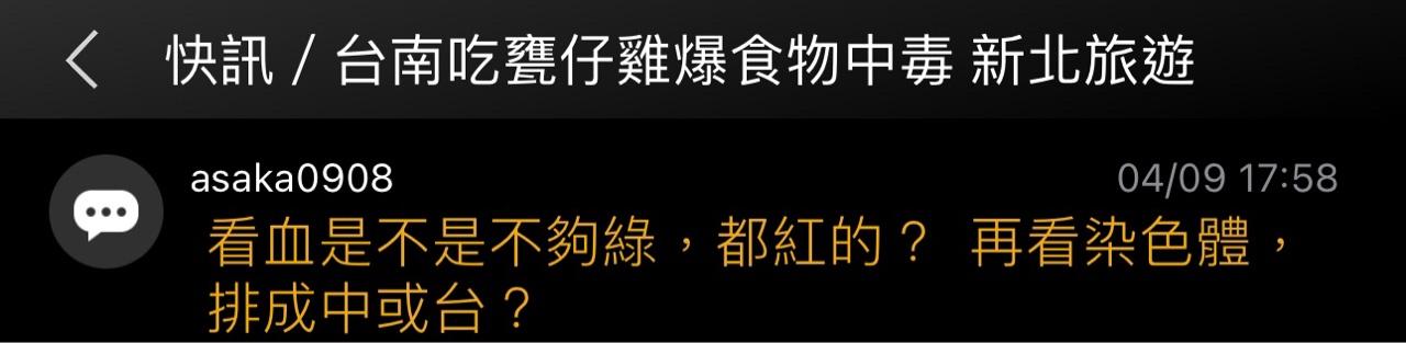 標題Re: [新聞] 快訊/台南吃甕仔雞爆食物中毒 新北旅遊