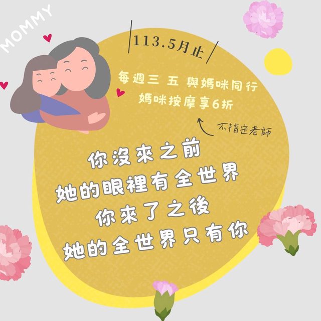 與媽咪同行 媽咪享按摩6折(含孕媽咪)