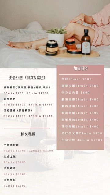 也因為這樣所以踏入了美體按摩行業,每年也會持續進修自己的技術和手法。又怎麼會接
