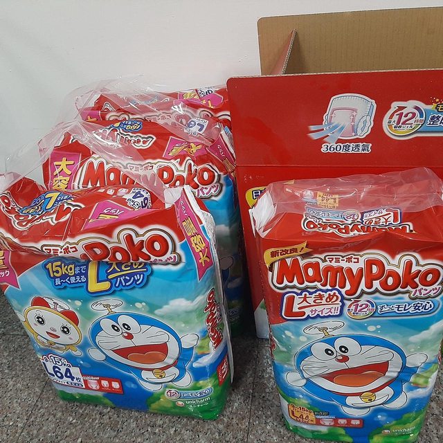 交易物品/金額/說明:哆啦A夢輕巧褲L號*7包;圖左三包,圖右四包