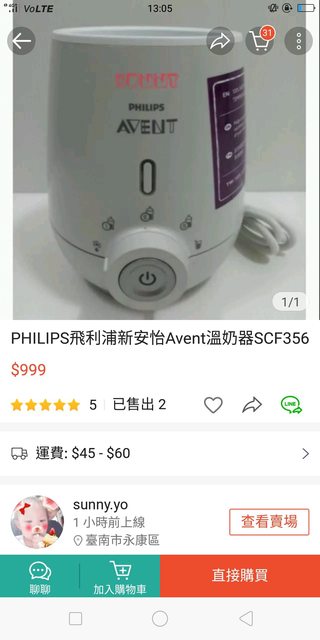 標題[交易] 飛利浦温奶器 食品加熱器scf356