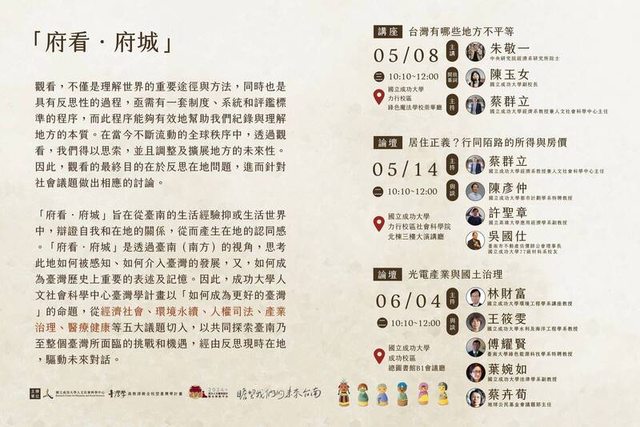 成大「府看.府城」規劃系列專題活動,思考探討台南房價、光電產業與環境永續等議題