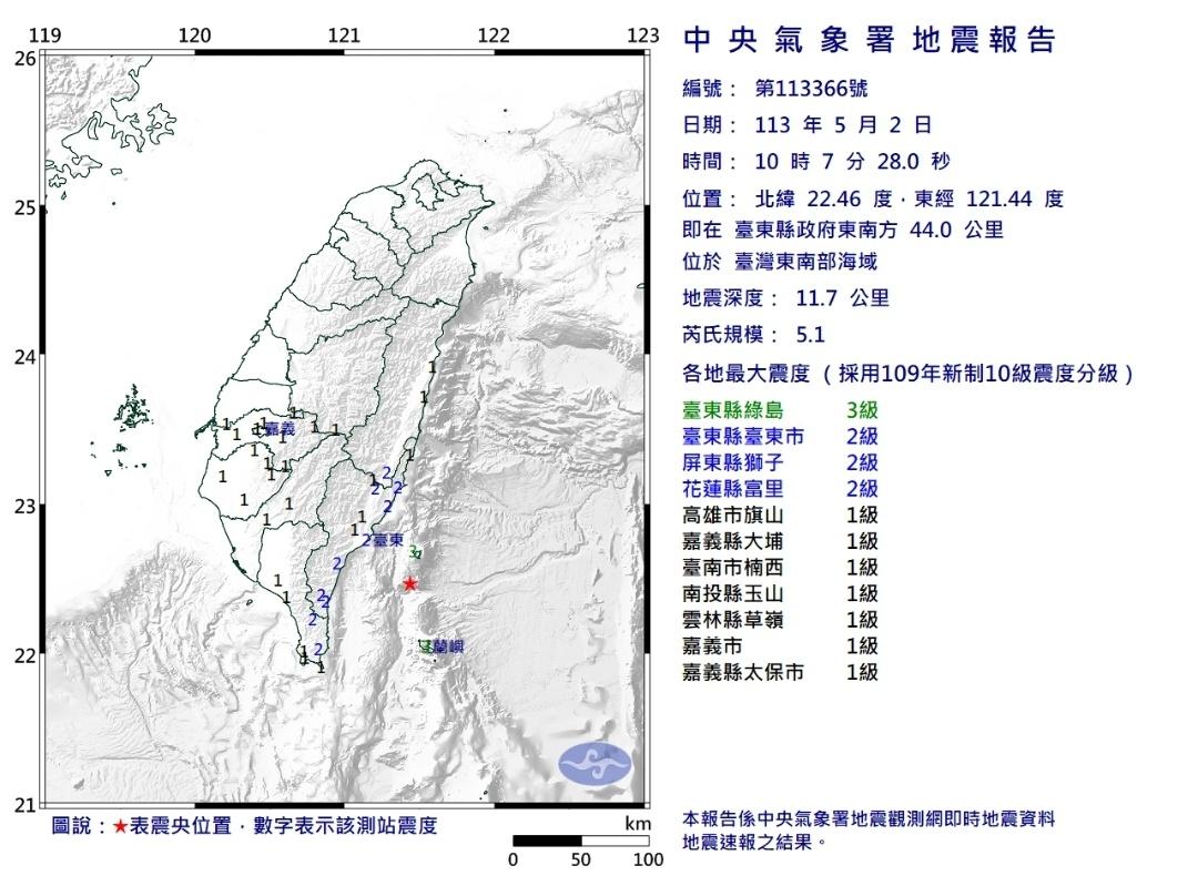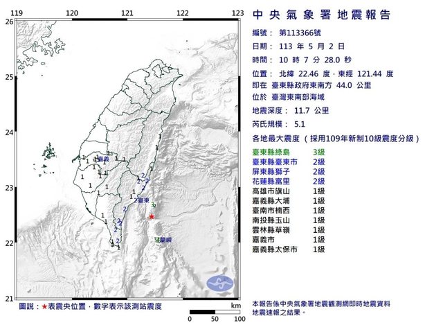 推 snow0915s: 震央大約在台東外海05/02 10:11