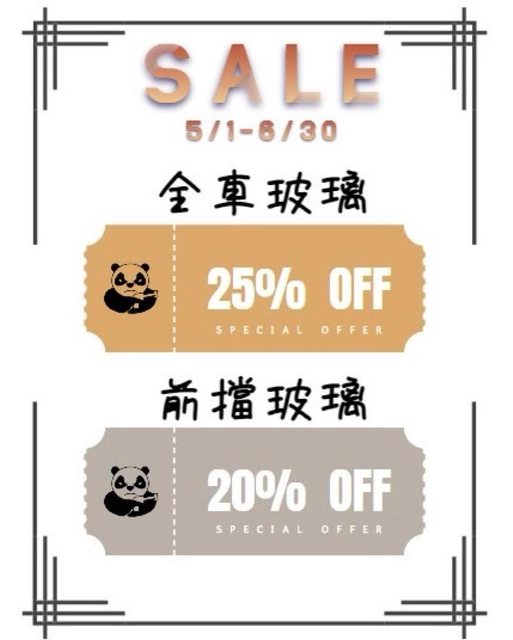 標題[自家] 熊貓洗車工坊「玻璃鍍膜超殺優惠」
