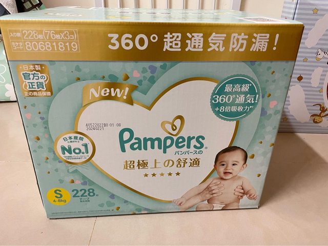 1.幫寶適紙尿布(s)228片,1100元/箱。