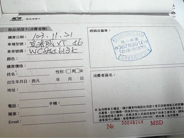 1.當初在南區健康路美利達購入,價格近4萬,先生少騎一直放在室內停車場。
