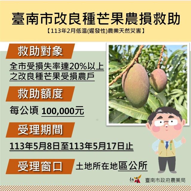 過了!農業部發布台南改良芒果列現金救助8日起受理