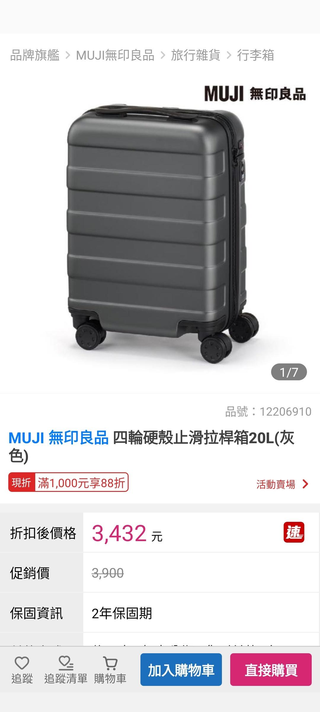 標題出售 全新MUJI 無印良品 約17吋 行李箱