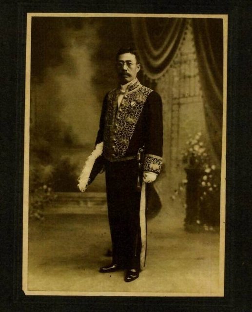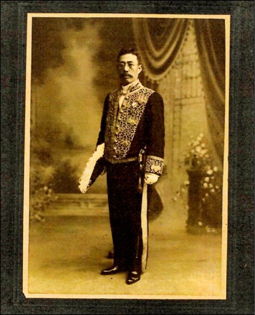手島兵次郎著大禮服的相片。(中研院提供)