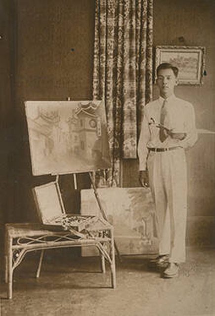 曾添福24歲時參加台南洋畫研究會展覽與〈岳帝廟通り〉、〈ゼーランジヤ城趾〉、〈花