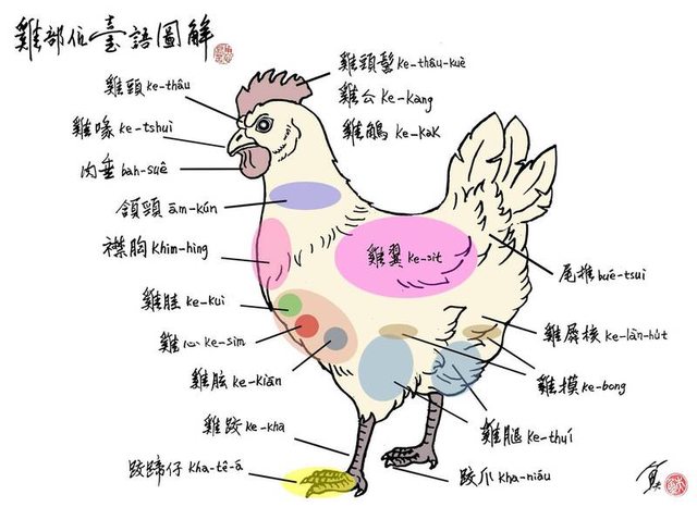 作家魚夫把雞的部位全用台語圖解出來了。(擷自魚夫臉書)