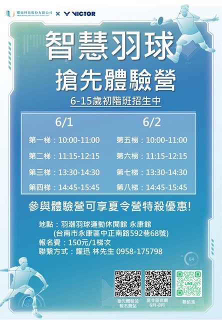 暑假快到了,太多選擇,怕選錯小朋友不喜歡! 沒關係先來參加智慧羽球搶先體驗營!