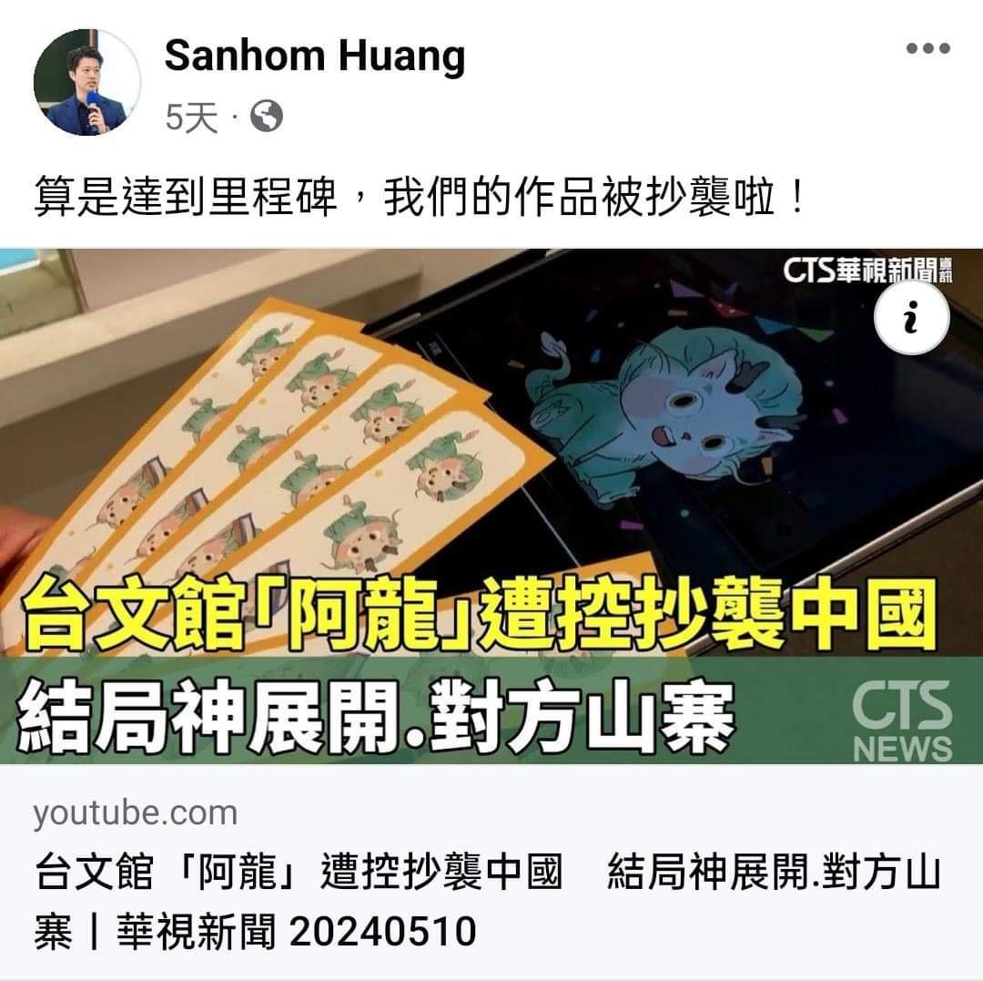 民眾指出抄襲中國卡通形象「嗷嗚龍寶_AoWu」,台文館澄
