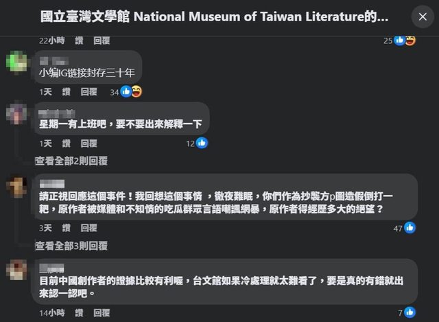 過了,怎麼還不出來解釋」、「台文館如果冷處理就太難看