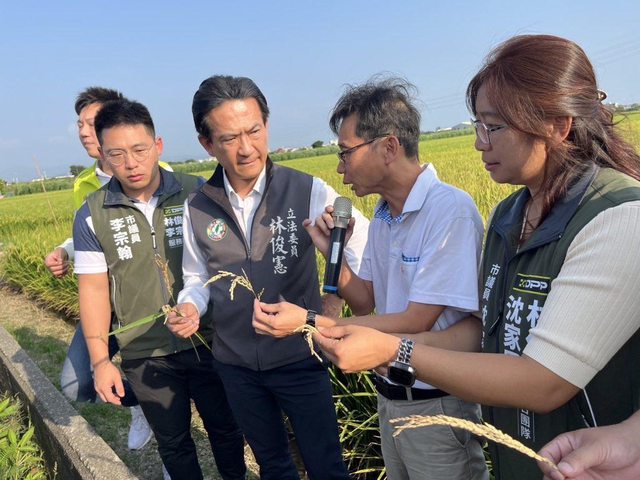 林俊憲請農糧署關注一期稻作受損情況,他說水稻保險的出