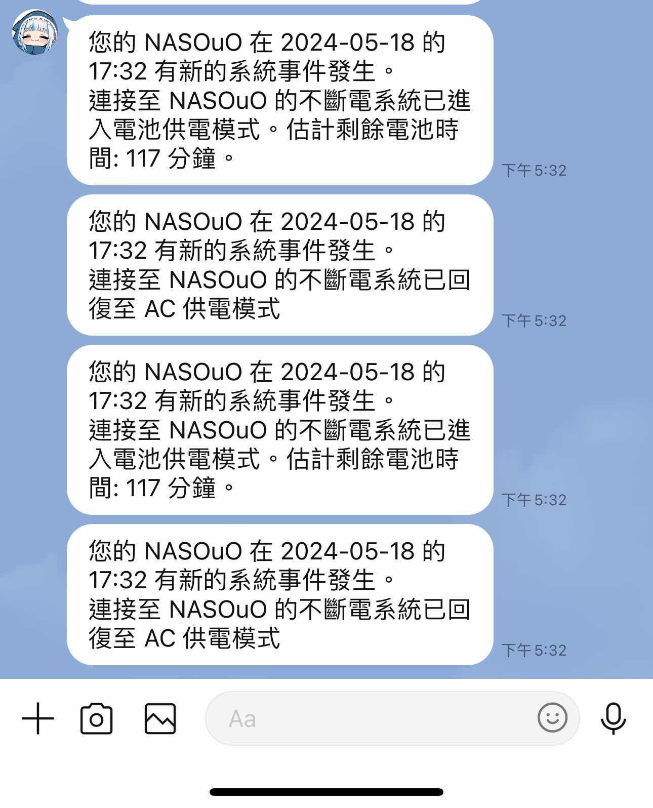 → observer0117: 倒是最近幾年經常收到UPS通知中斷開始UPS供電 05/18 18:58