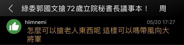 → starnight555: 搶70幾歲阿伯文件那個人要不要順便?05/20 12:06