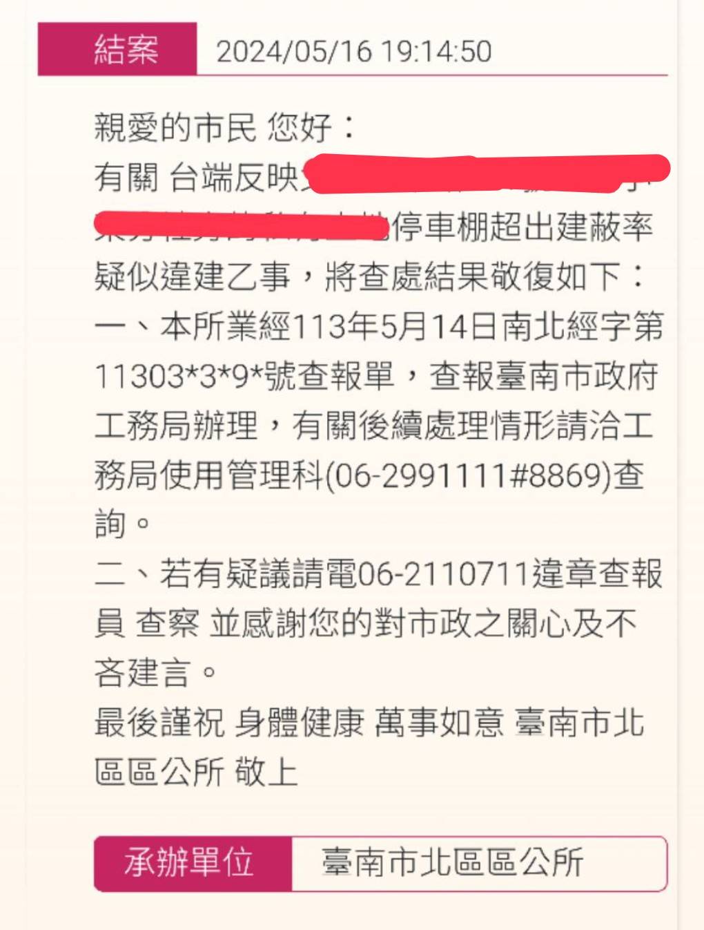 → forsakesheep: 沒有,對方說當下就已經轉工務局了,工務局也已經 05/22 15:18