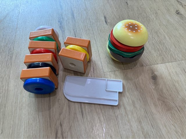 配件有:鍋子、鍋鏟、電話、瓦斯爐(鼓)、盤子、紅蘿蔔、花椰菜、肉片