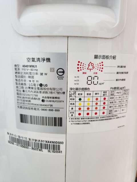 更大坪數空氣清淨機故出售此LG大白(面板保護貼未拆過)正常使用,外觀狀況良好。