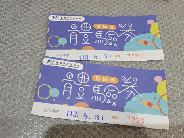 贈送台南市立游泳池體驗券兩張