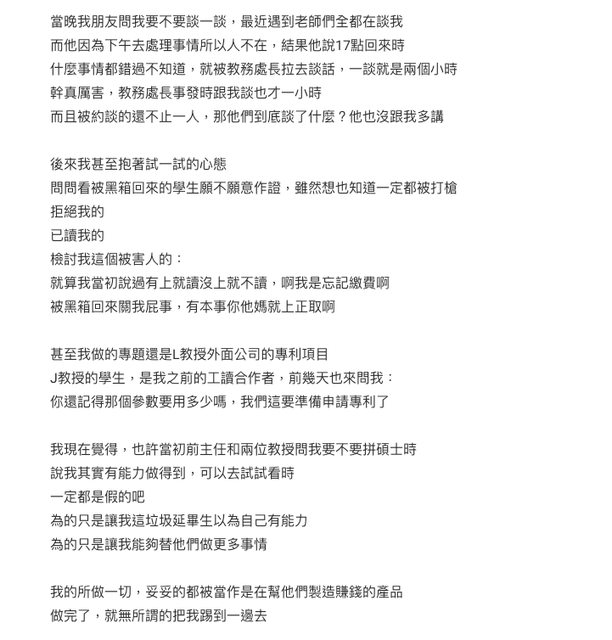 推 jiern: 如果真有黑箱 校方連談都不會談 那會有這麼多對話供截圖 05/31 06:39
