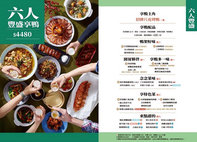 菜單,今天我們是九人用餐,但預設菜單沒有九人套餐,所以我們選了「六人豐盛享鴨」