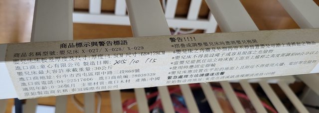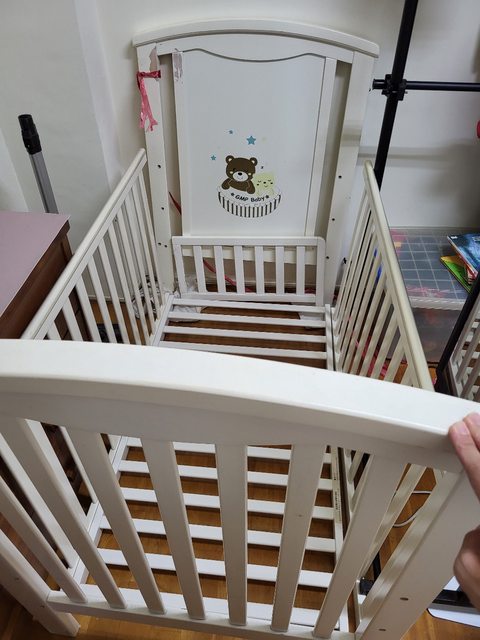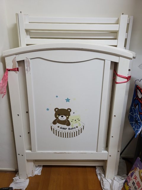 徵求內容:嬰兒床一座如圖,木頭狀況良好些微地方掉漆,但螺絲不見了,須自行找合適