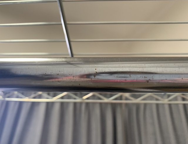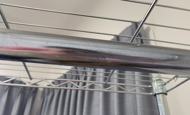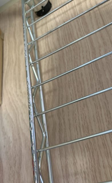 ,但有褪色痕跡,第二個收納套有破一個小洞;層架有些地方有掉漆,衣竿有細微點點生