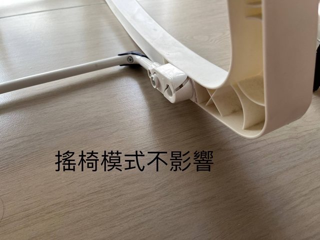 新舊狀況:一手,下面支架的關節處因大人跌倒壓到椅子而斷裂,不影響搖椅模式;買來從未使用過震動功能,家裡也無電池可測試,故不知道震動功能是否正常。詳見圖片
