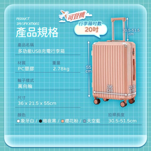 標題[交易] 全新 20吋多功能usb行李箱