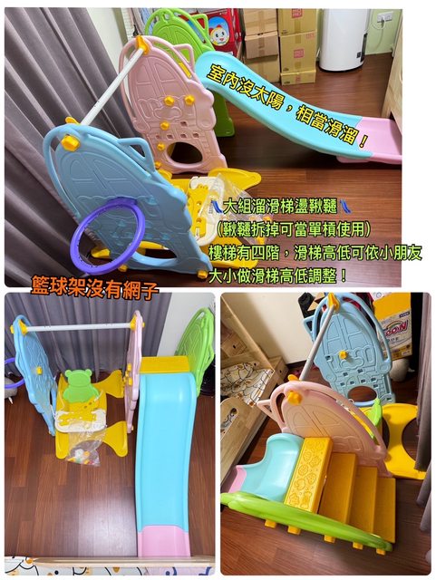 旁邊盪鞦韆拿掉可以變成單槓玩(我們家小孩基本上都是當單槓),一個 還有簡易籃球架