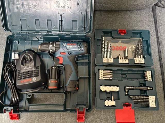 雙鋰電池+充電器,型號GSB-120LI,一盒多樣式鑽頭,搬家時買來使用過兩三次後就都沒
