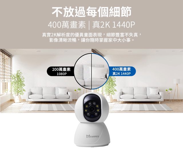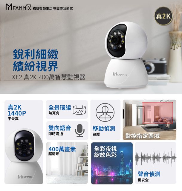 交易物品/金額/說明: FAMMIX菲米斯】XF2 真2K 400萬畫素補光Wi-Fi旋轉網路攝影機/監