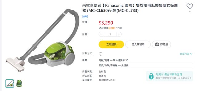 標題[交易]售Panasonic MC-CL630 全新吸塵器