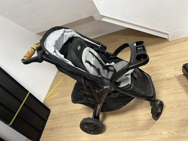 新生兒可平躺,可單手收車,底下置物空間大,車身很穩 後面掛包包也不會倒車