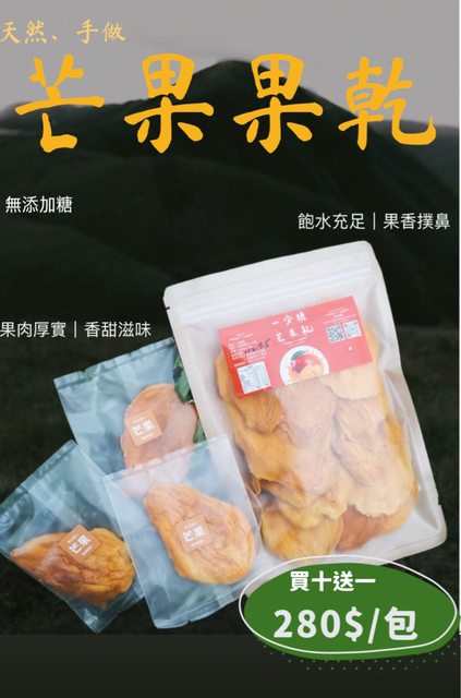 一顆愛文芒果只生成兩片芒果乾,不放任何糖,原肉低溫烘烤製成。
